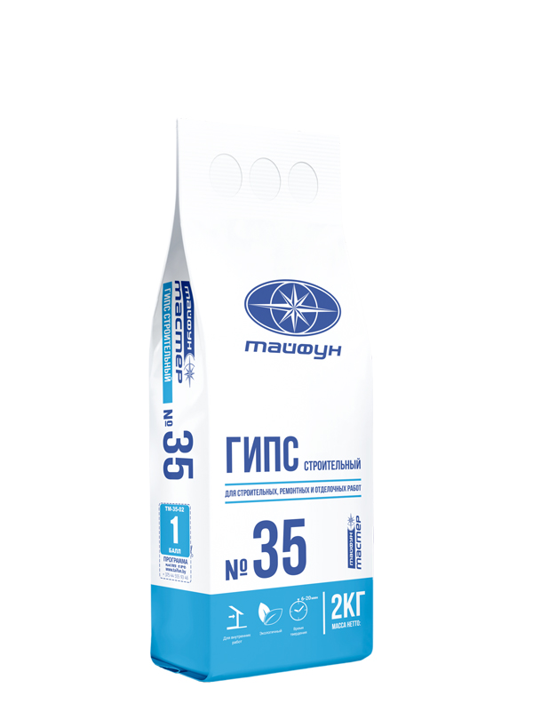 Применяется для производства ремонтных работ внутри помещений. Рекомендуется применять для заполнения щелей, раковин и трещин в минеральных основаниях, а также заполнения штраб, монтажных коробок, углублений при монтаже электропроводки. «Тайфун Мастер» № 35 применяется для изготовления гипсовых строительных изделий всех видов, декоративных деталей для украшения интерьеров, потолков и стен. Не рекомендуется наносить гипсовый раствор на поверхности, часто подвергаемые воздействию влаги, и в помещениях с повышенной влажностью. Виды основания: бетонные поверхности, цементно-известковые, цементные и гипсовые штукатурки, гипсовые плиты, гипсоволокнистые (ГВЛ) и гипсокартонные (ГКЛ) листы.