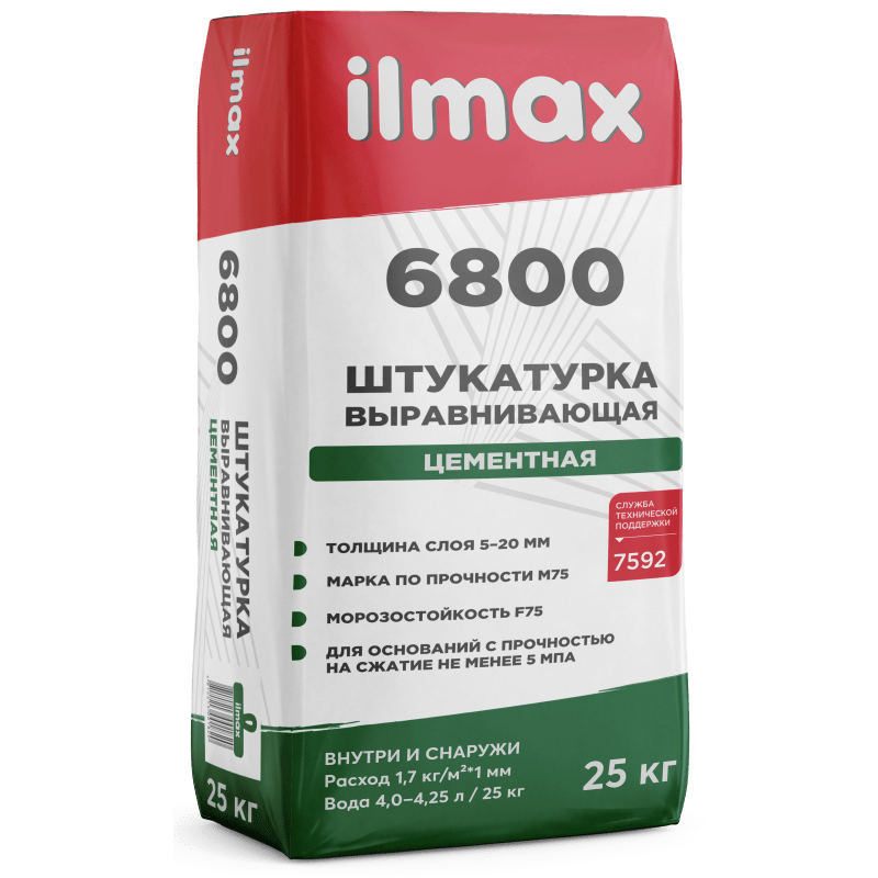 ilmax 6800 – штукатурка для выравнивания неровностей свыше 5 мм и подготовки поверхности под дальнейшую отделку. Можно наносить в несколько слоев. Для ручного нанесения.